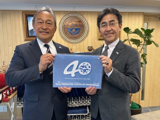 新しく駐パラオ日本国大使に任命された笠原謙一大使閣下の表敬訪問を受けました。笠原大使は外務省大洋州課に在籍していた際に太平洋地域を含むパラオ共和国に精通していたことから、同国の日本大使に任命されました。